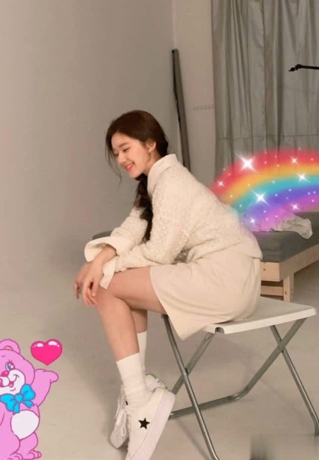 她还扎着马尾辫,显得青春俏皮,很有少女感。白色外套+短裤的造型,展现出高挑的身材,一双修长的双腿更是让人眼前一亮,又细又直的腿型很好看,也是女孩们喜欢的类型吧?