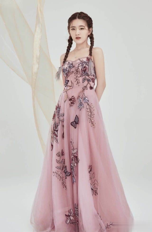 赵露思穿连衣裙的样子也好看,粉色的薄纱长裙采用了刺绣的设计,增添了时尚元素,更显吸引力。抹胸的设计展现出白皙肌肤,迷人的锁骨和肩线更是迷人,有点小性感。